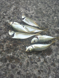 とかおもってたら、同じサイズのアジが数匹釣れました。